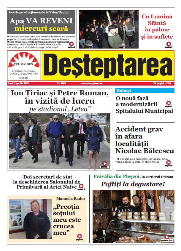 „În urmă evoluției lucrărilor de remediere a avariei, va informăm că estimăm durata de restricționare a programului de furnizare a apei în Municipiul Bacău și comunele Mărgineni și Hemeiusi (sat Fântânele) până în dată de 04.04.2018, ora 12.00, determinată de perioada necesară pentru reumplerea completă a conductei de aducțiune” se arată într-un comunicat CRAB.
