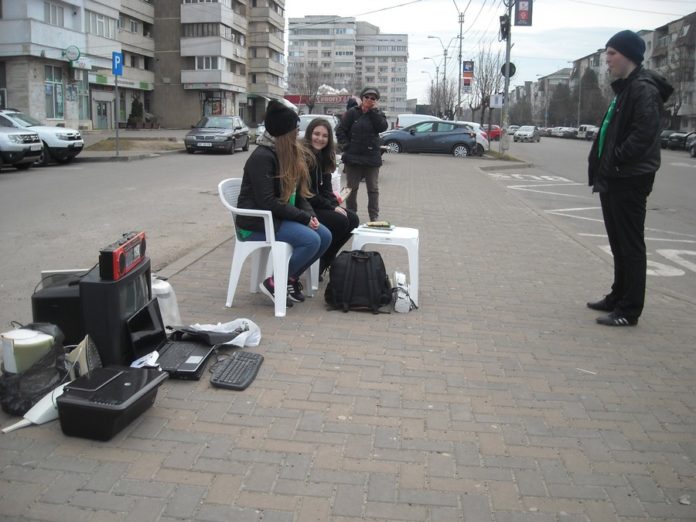 Trei tineri zgribuliți așezați lângă un morman de obiecte electrice și electronice vechi, nefuncționale, nu pot trece neobservați. Cătălina, Marius și Georgiana, elevi la Colegiul Tehnic de Comunicații “N.V.Karpen”, Colegiul Național “Ferdinand I” și Școala “Ion Creangă”, sunt voluntari într-un program de reciclare desfășurat în cadrul proiectului “Bacău – Capitala Tineretului”.