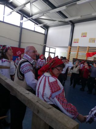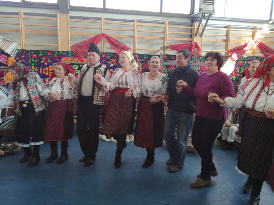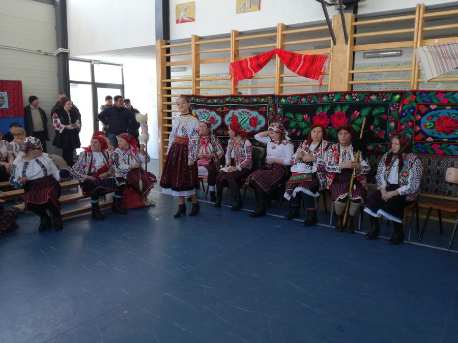 De pe toate uliţele satului, grupuri – grupuri de femei, copii şi bărbaţi, îmbrăcaţi în frumoase costume populare, cântând, se îndreptau către Sala de Sport a Şcolii, aflată pe o frumoasă culme a satului. Decorul hibernal, lăcrimând sub un soare generos de început de martie, te ducea într-o lume de basm, pe care, mulţi ani, doar în cărţile de poveşti o mai găseai. “Va fi un an bogat”, spuneau bătrânele satului, urcând spre locul unde, la iniţiativa primarului Bernadin Tamaş, a Consiliului Local, urmează să aibă loc o mare şezătoare, o readucere în prim plan a obiceiurilor şi tradiţiilor moştenite din bătrâni.