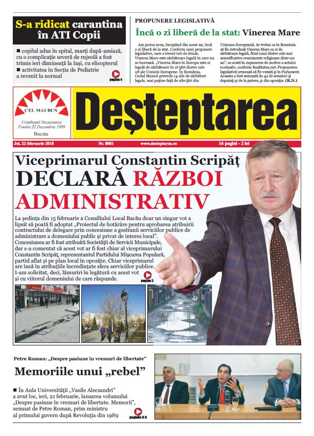 „Primarul este în măsură să delege atribuțiunile viceprimarului. Astfel și eu am acum alte atribuțiuni, prin care răspund de alt compartiment al primăriei. Deja am luat legătura cu oamenii de acolo și voi respecta întru totul dispoziția domnului primar”, ne-a declarat Constantin Scripăț.