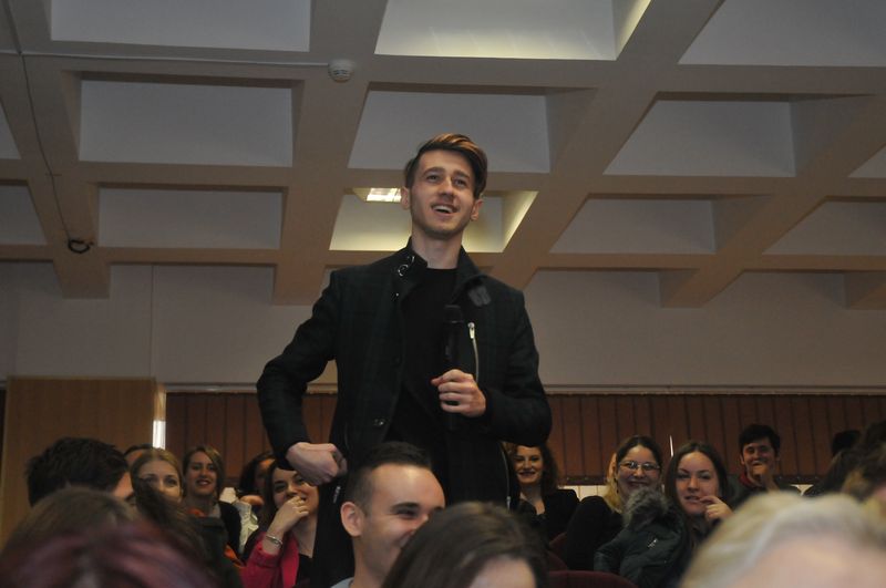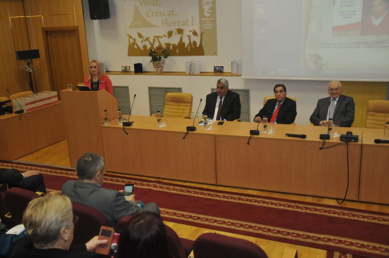 Primit cu simpatie, Petre Roman, îmbrăcat impecabil, cu un costum negru, la care a asortat o cravată roşie, acelaşi Petre Roman pe care îl cunoaştem de la Revoluţie, de la Baricadă, de la şedinţele de guvern, din Parlament, a luat loc la masa invitaţilor, alături de prof. univ.dr. Ovidiu Leonard Turcu, decan al Facultăţii de Ştiinţe Economice, conf.univ.dr. Cristina Cîrtiţă-Buzoianu, prorector pentru Etică şi Imaginea Universităţii şi, surpriză, Petru Plăcintă, fost membru în Guvernul Roman.