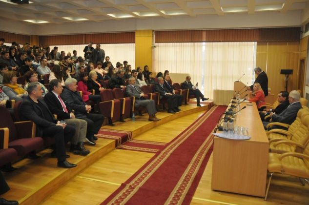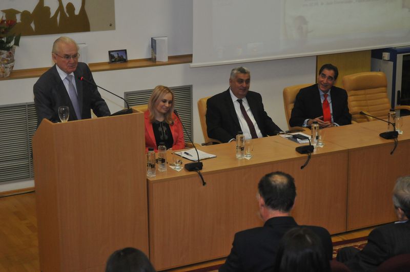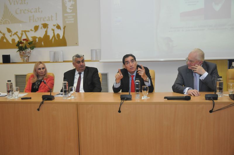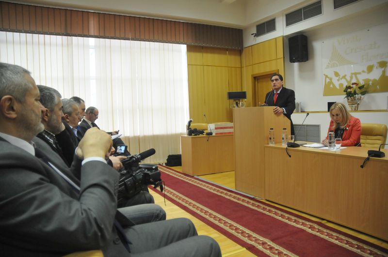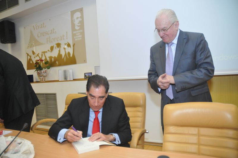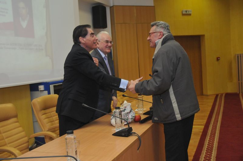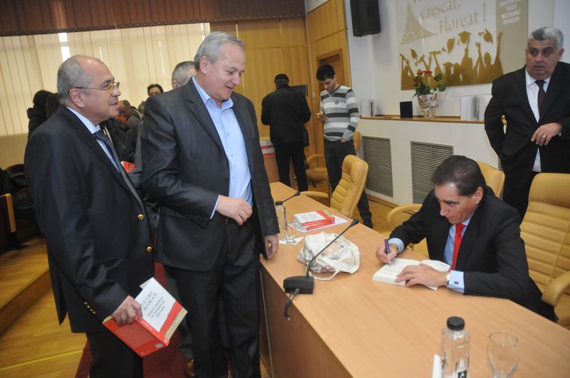 Făcând oficiul de gazdă, decanul Facultăţii de Ştiinţe Economice, prof.univ.dr. Ovidiu Turcu, a făcut o scurtă prezentare a principalelor momente din viaţa academică şi politică a invitatului, cunoscute în cea mai mare parte de cei prezenţi.