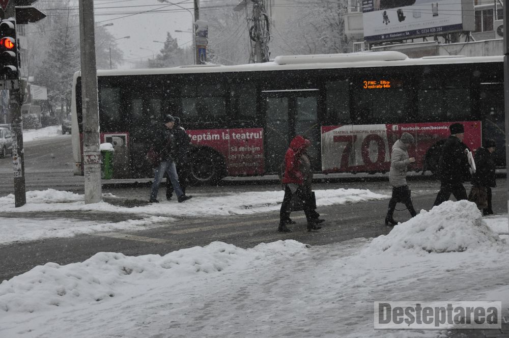 În municipiul Bacău arterele principale au fost deszăpezite, pe șosele s-a împrăștiat antiderapant, pe trotuare se circulă mai greu, dar lucrătorii de la Serviciul public de salubritate sunt deja la curățăt, mai ales în zona centrală. Se așteaptă și o comunicare din partea Comitetului Județean pentru Situații de Urgență.