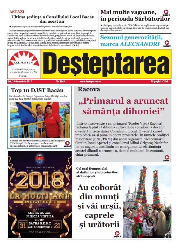 În preajma Sărbătorilor de Iarnă, organismul condus de Georgel Cojocaru a oficializat clasamentul celor mai buni sportivi băcăuani în 2017. Primul loc a revenit atletei de la CSM Onești, Andreea Elena Panțuroiu. Campioana europenă Under 23 la triplusalt este urmată pe podium de halterofilul Ionuț Ilie (CSM Bacău) și de un alt atlet, Alexandru Soare, de la Știința.