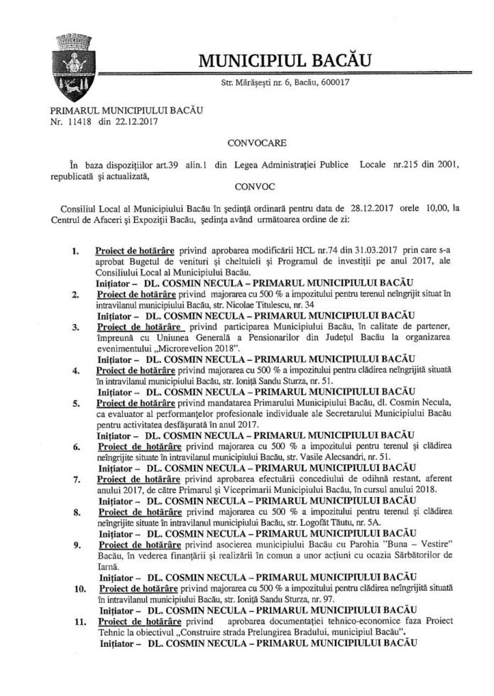 Dată în reşedinţa noastră arhiepiscopală de la Roman, decembrie 2017