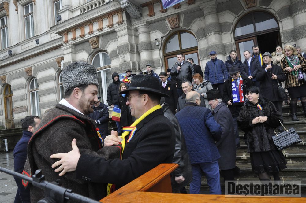 Pata de culoare a manifestării a reprezentat-o familia Călcăianu, din Letea, care, în fiecare an îmbracă costumul național și participă la manifestări. Manifestările se mută în Piața Tricolorului, începând cu ora 12.00, unde, conform programului, Ansamblul folcloric „Mugurașii Agăș” va susține un spectacol cultural-artistic, iar George Cojocărescu va intona imnul național al României.