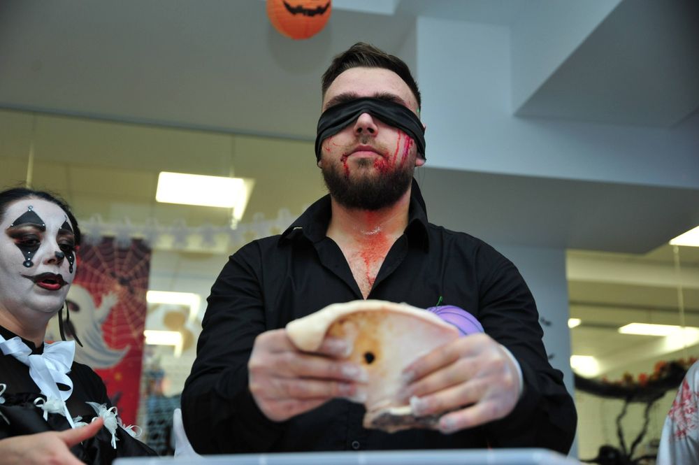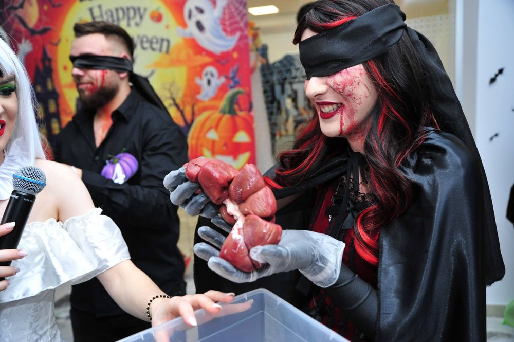 – Mystery Box, o provocare amuzantă cu „suprize” tematice de Halloween (identificarea unor organe de animale legați la ochi).