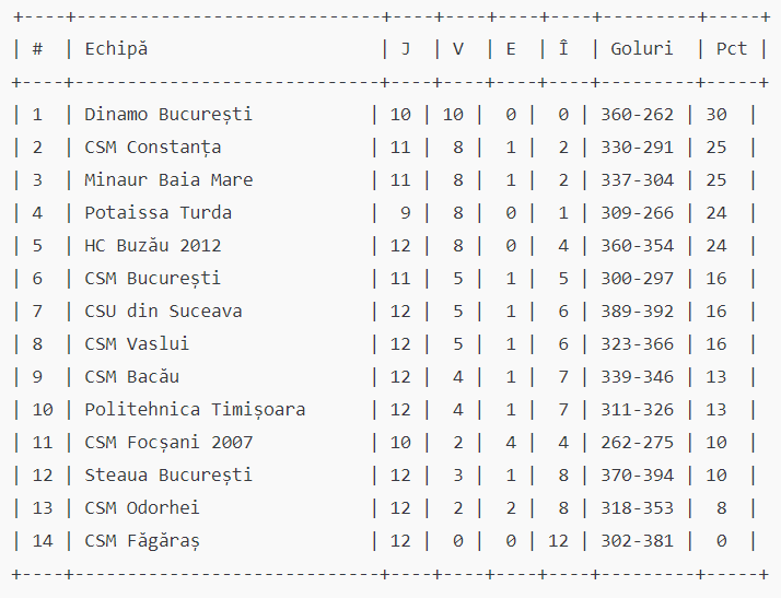 În runda a 11-a, „CSMeii” au pierdut acasă cu CSM Vaslui, cu 26-25 după ce au condus cu 12-9 la pauză, pentru ca etapa trecută, la Suceava, să cedeze cu 31-30 un meci în care au avut avans cinci goluri pe finalul primei părți.