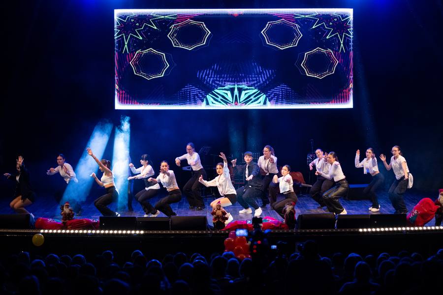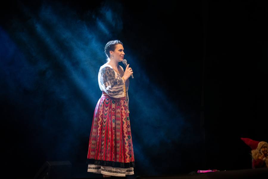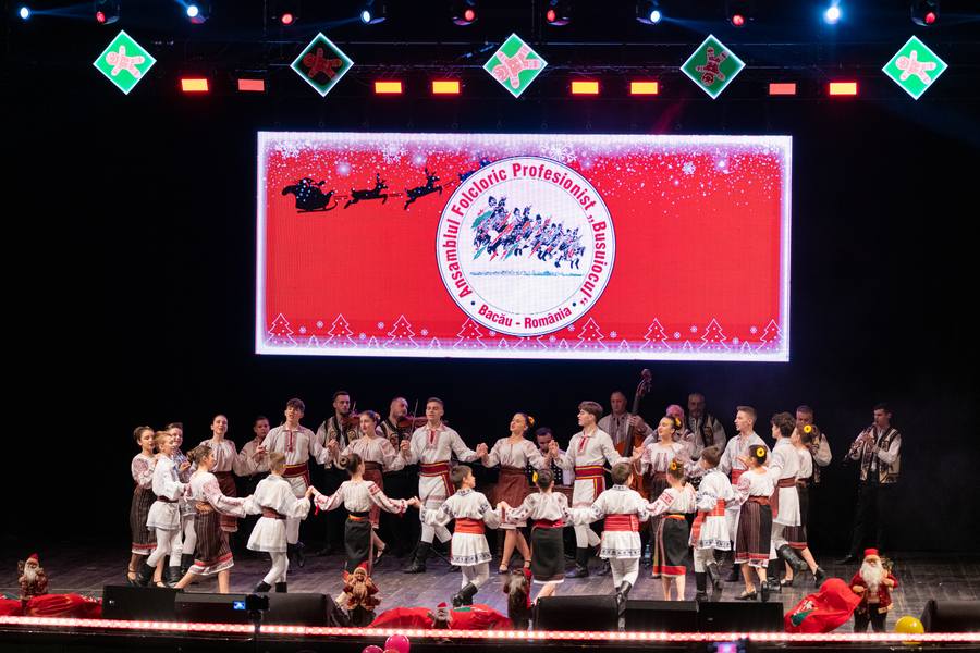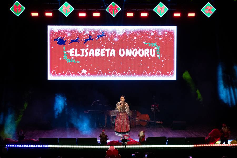 A urmat Lary, cu colinde de Crăciun, Academia de Dans Adamas, cu formații sau cu cupluri și, o primă surpriză, actorul Matei Bogdan a anunțat momentul colegei sale din cuplul de prezentori ai spectacolului, Elisabeta Unguru.
