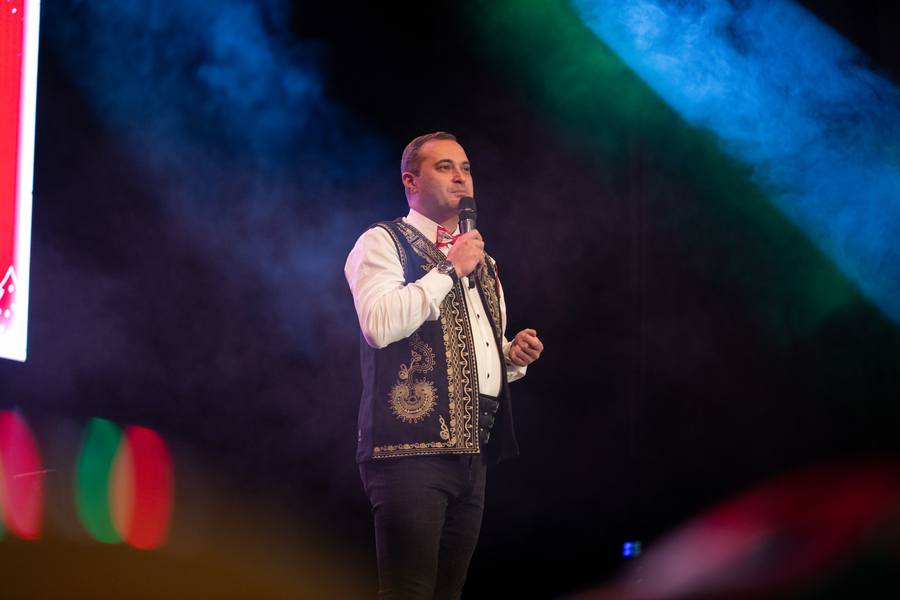 Care este o foarte bună și cunoscută interpretă de muzică populară și care a încântat publicul cu prestația sa. Ea a fost urmată de colegii săi de gen muzical, Cosmin Timofte și, mai ales, Ion Paladi, al cărui recital a fost un punct culminant al spectacolului. El a scos lumea la horă. De jur împrejurul sălii s-au format brâuri de dansatori și aerul s-a umplut de entuziasm.