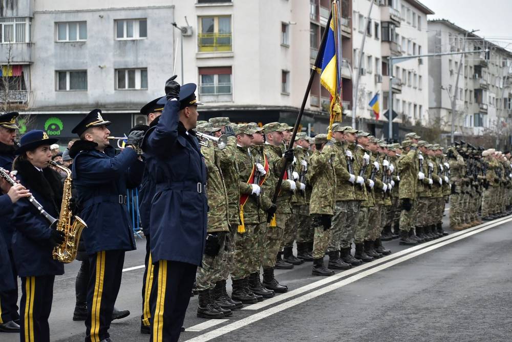 În centrul orașului, în Piața Tricolorului, o altă ceremonie de amploare a continuat spiritul patriotic al zilei. Defilarea militară, acompaniată de fanfară, a adus un omagiu simbolic unității și rezilienței poporului român. Clerul și oficialitățile au oficiat o slujbă de binecuvântare, îndemnând la unitate, credință și speranță.