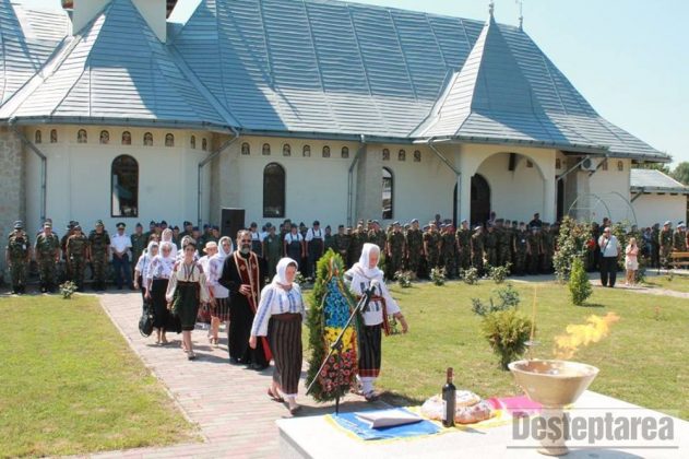 După unii autori şi inscripţia de pe tabloul votiv ar fi fost ridicată in 1664 de către logofătul Nicolae Buhuş insă data corectă, după spusele istoricilor şi unele documente este 1694 (ctitor Ion Buhuş – vezi Prof. Corneliu Stoica „Istoria ilustrată a oraşului Tg.Ocna din cele mai vechi timpuri pană la 1918”, editura Aristarc, Oneşti, 2003, pag.116) şi a fost refăcută de logofătul Radu Racoviţă la 1763, după cum se menţionează in pisania de la intrare (1763).