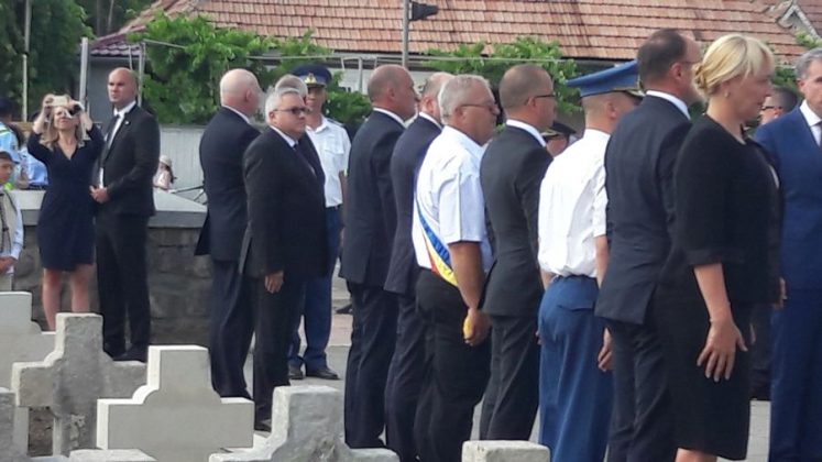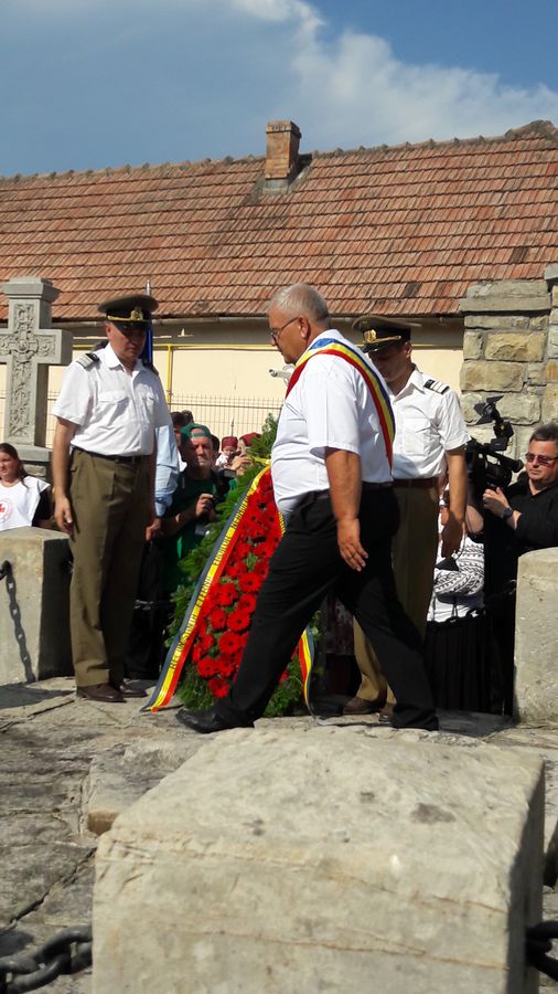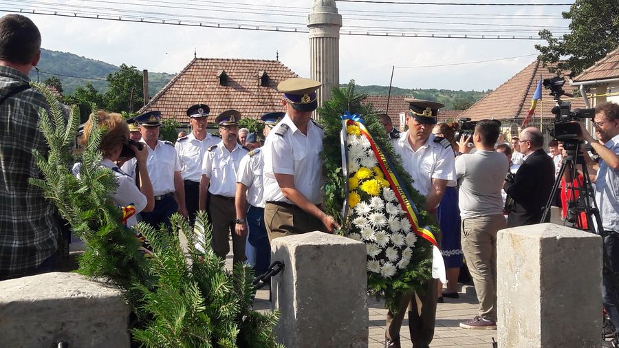 Gheorghe Bodea, primarul comunei Oituz a întâmpinat oficialitățile, iar alături de el s-au aflat și reprezentanți ai Primăriei Onești, Instituției Prefectului Bacău și Consiliului Județean Bacău. S-a intonat imnul României, timp în care Corul țărănesc al Oituzului a cântat în surdină.