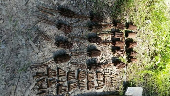 La fața locului, pirotehniștii au descoperit 14 mine antipersonal, 77 cartușe calibru 7,92 mm și 4 grenade ofensive de mână.