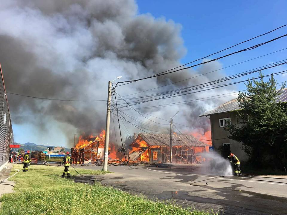 „A ars o clădire din lemn pe o suprafață de aproximativ 500 mp și acoperișul unei a doua clădiri pe o suprafață de circa 200 mp.