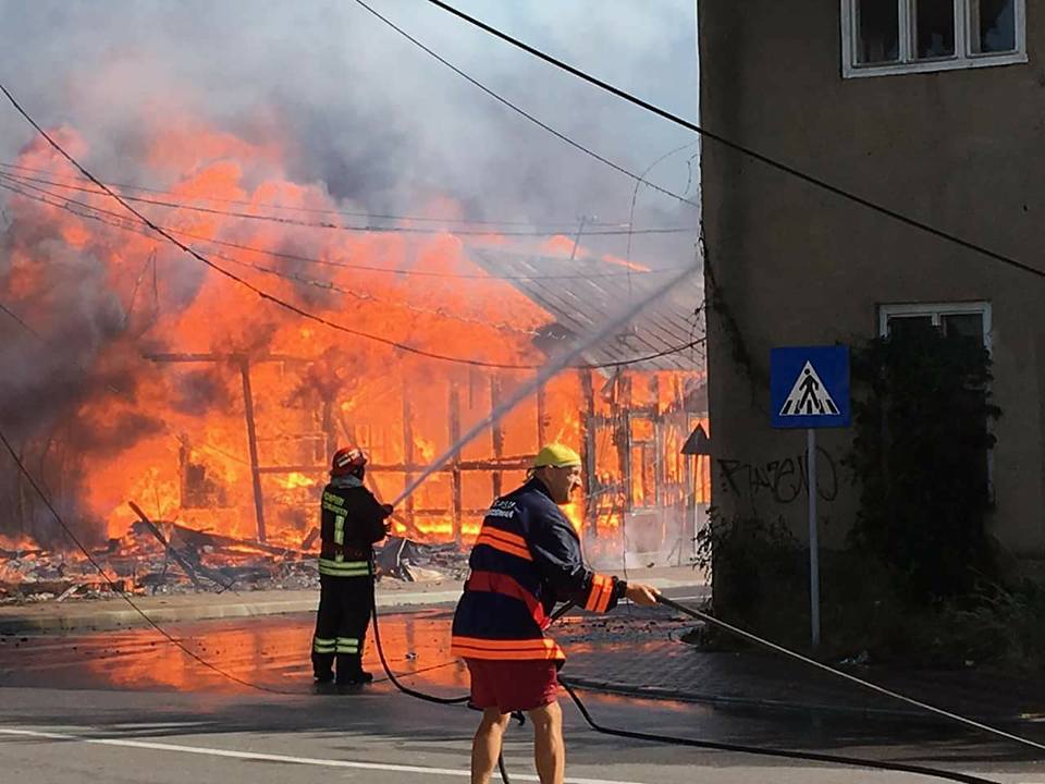 Pompierii au intervenit în această seară pentru lichidarea unui incendiu produs la două clădiri dezafectate, din oraşul Comăneşti, aflate în apropierea a două mari magazine.