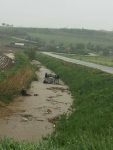 O mașină răsturnata în șanț, în urma unui accident, în apropiere de Tisa Silvestri a fost acoperita de ape.