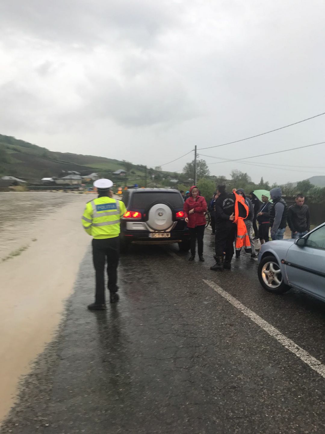 la fața locului s-a mai deplasat un echipaj din cadrul Detaşamentului de Pompieri Bacău, pentru evacuarea apei din 10 curți.