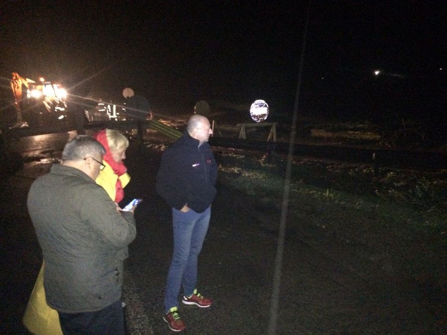 În prezent, la fața locului, se acționează cu 1 buldoexcavator, 1 unimog, 1 încărcător frontal, un cilindru compactor și 3 autobasculante care cară material pietros (piatră spartă) pentru refacerea rampelor distruse. Se estimează reluarea circulației rutiere în cursul zilei de astăzi (duminică), în funcție de condițiile meteo