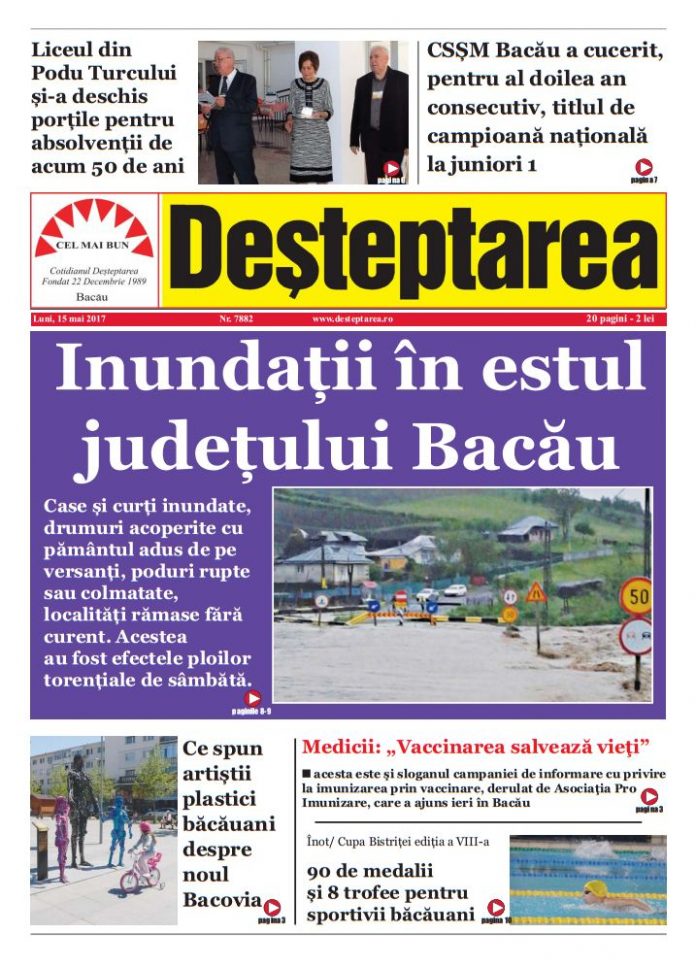 O analiza completa a acestei competitii si cine sunt castigatorii trofeelor Cupa Bistritei editia a VIII-a, aflati din editia de luni, 15 mai, a cotidianului Desteptarea.