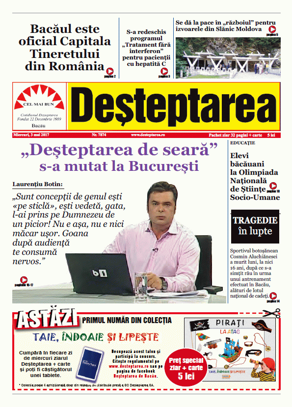 Să o iau pe rând. Mai întâi, sincer, mă mir în fiecare zi că „Deșteptarea” e în continuare pe print. Asta înseamnă că e un produs media bun. La București, doar ce e bun a rămas pe print. Câteva publicaţii. Zeci de ziare nu mai sunt tipărite, unele mai sunt doar online. Bravo vouă și Laudetei Sechelariu. Pe bune, chiar dacă e în ziarul vostru acest interviu, nu poţi nega evidenţa.