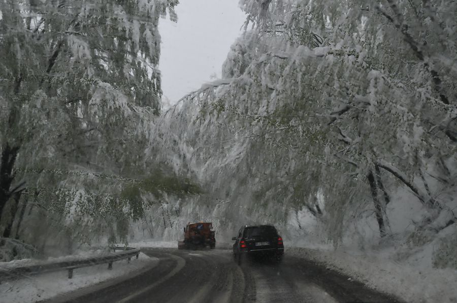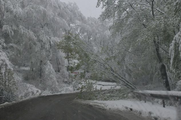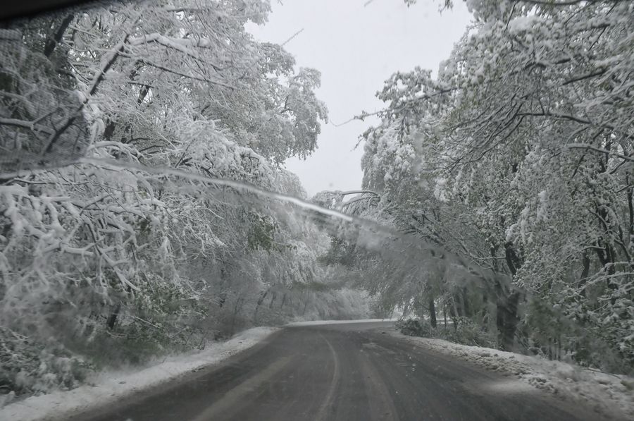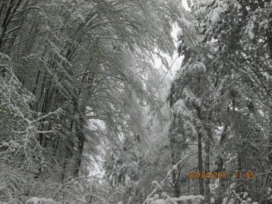 – mai multe crengi de copaci au căzut pe carosabil, sub greutatea zăpezii