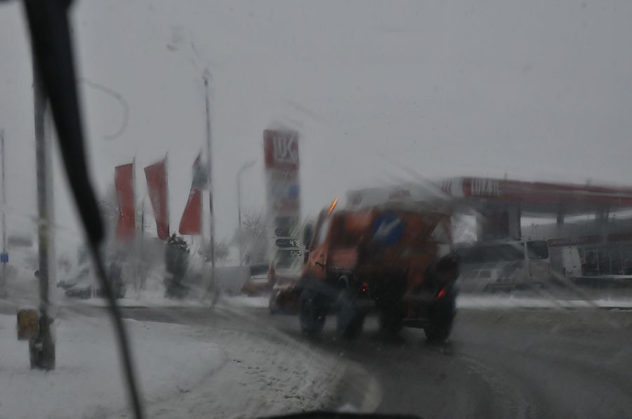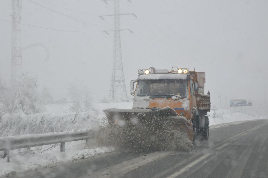 Singurii şoferi care au avut curajul să oprească pentru a degaja drumul sunt cei care conduc maşinile de deszăpezire.