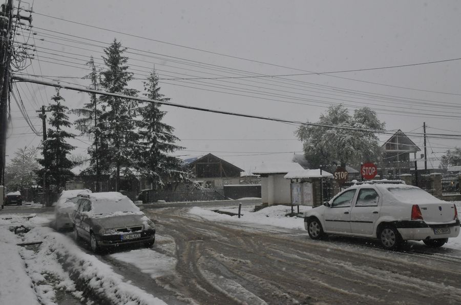 Suntem în aprilie, pe finalul celei de-a doua luni de primăvară, dar iarna s-a întors. Iata câteva imagini din Bacăul acoperit de zăpadă.