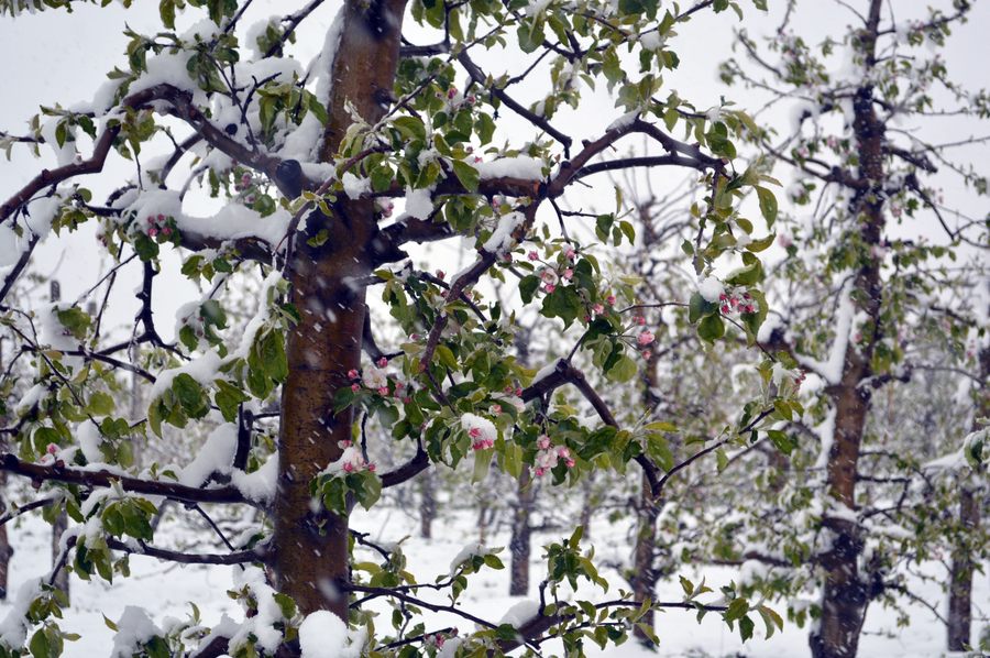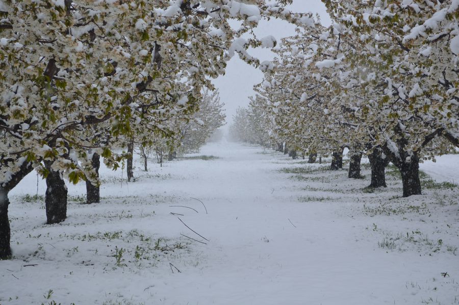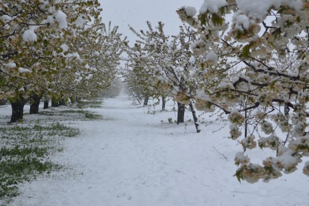 „Zăpada mieilor”, căzută din abundență peste tot județul, pune în pericol viitoarele producții de fructe. Astfel, sute de hectare de livezi, unde pomii fructiferi au apucat să înflorească, par a fi compromise în totalitate de neaşteptatul fenomen meteorologic. Cele mai afectate sunt plantaţiile de cireşi, vişini şi pruni pe care zăpezile „rătăcite” de primăvară le-a prins în plină floare.