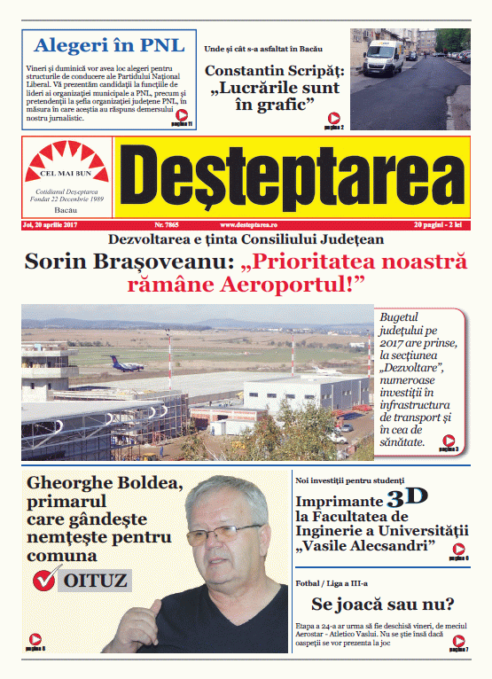 Bugetul județului pe 2017 are prinse, la secțiunea „Dezvoltare”, numeroase investiții în infrastructura de transport și în cea de sănătate. „Prioritatea noastră rămâne Aeroportul Internațional George Enescu, mai exact finalizarea investiției din surse proprii – terminalul de pasageri, turnul de control, anexa administrativă, parcarea, terminalul intermodal, rezervorul de apă și stația de pompare -, termenul fiind iulie 2017”, a declarat Sorin Brașoveanu, președintele CJ Bacău.