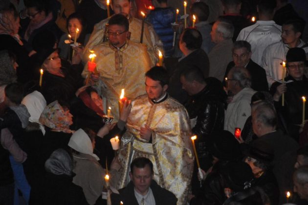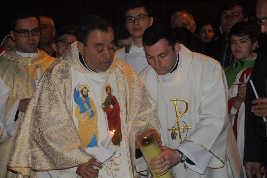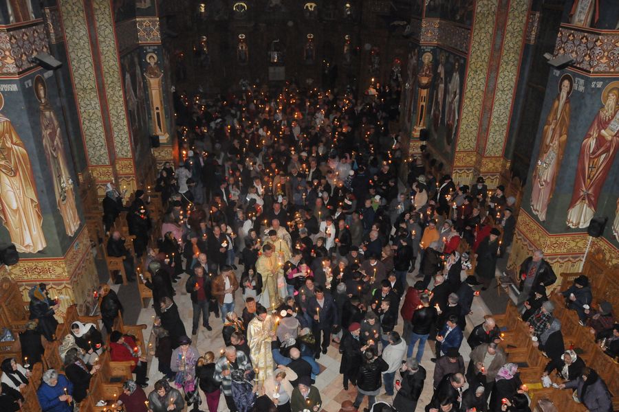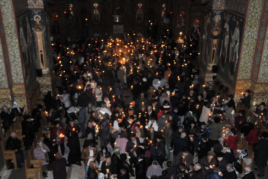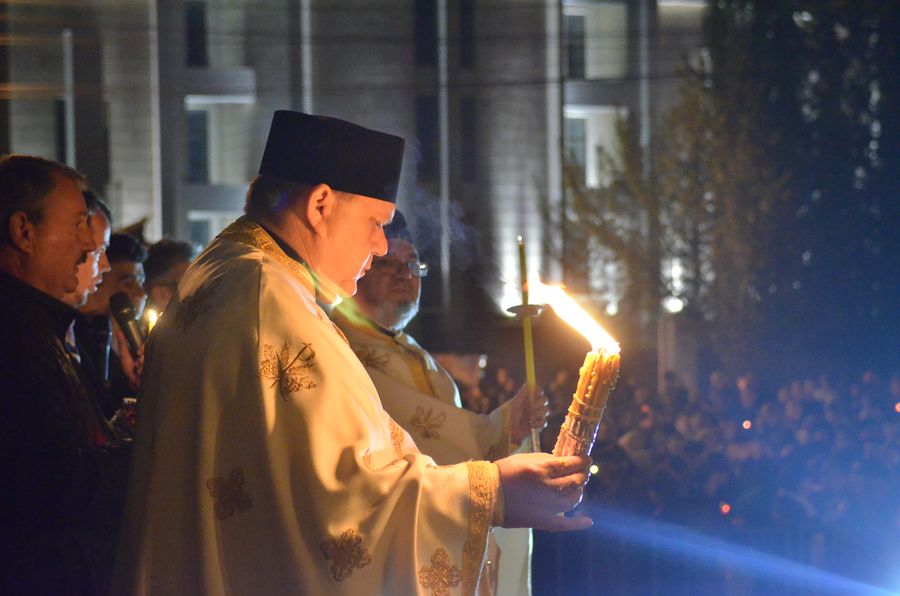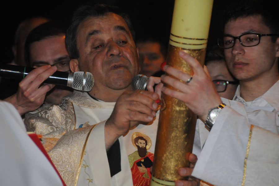 Cu calm, fără nicio grabă, pentru că este Vigilia Paștelui, așteptăm ca din întunericul mormântului să țâșnească Lumina și să ne trezească la bucuria Învierii. De 18 ani de când celebrez această Noapte Mare, niciodată nu am terminat înainte de ora 6.00 dimineața. Se face și botez prin scufundare. E foarte interesant pentru că și preotul intră în apă. Sunt acele momente unde uit de timp și de spațiu. Și, desigur, cei care au avut parte de astfel de momente înțeleg foarte bine această trăire, când îți dorești să nu se termine niciodată. ”