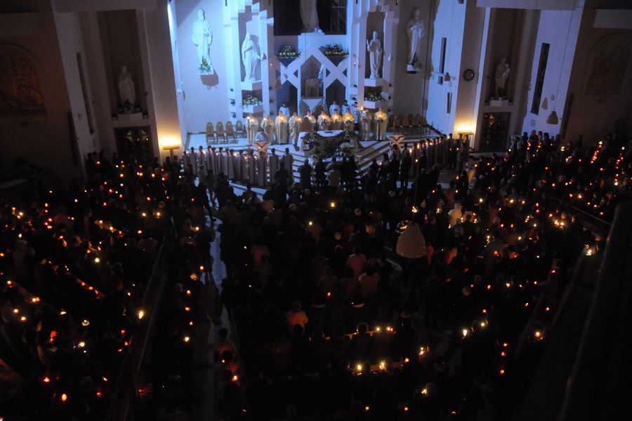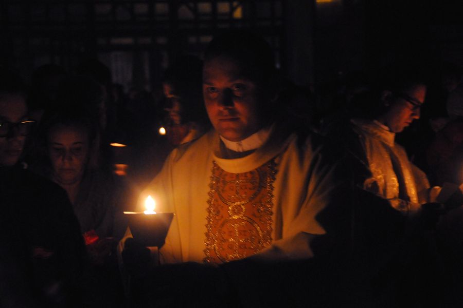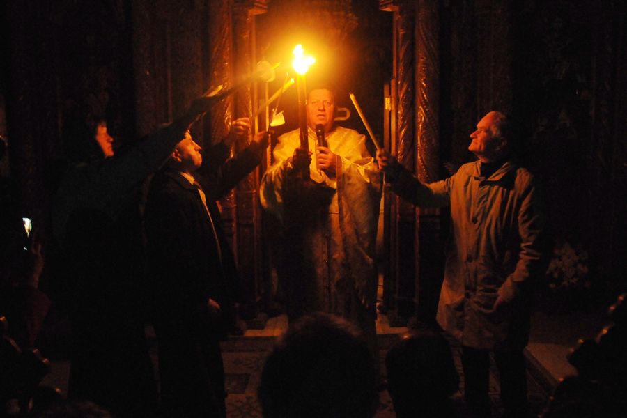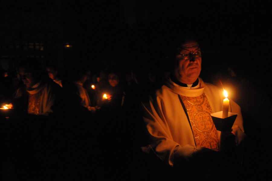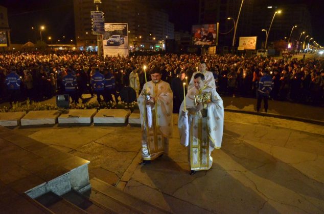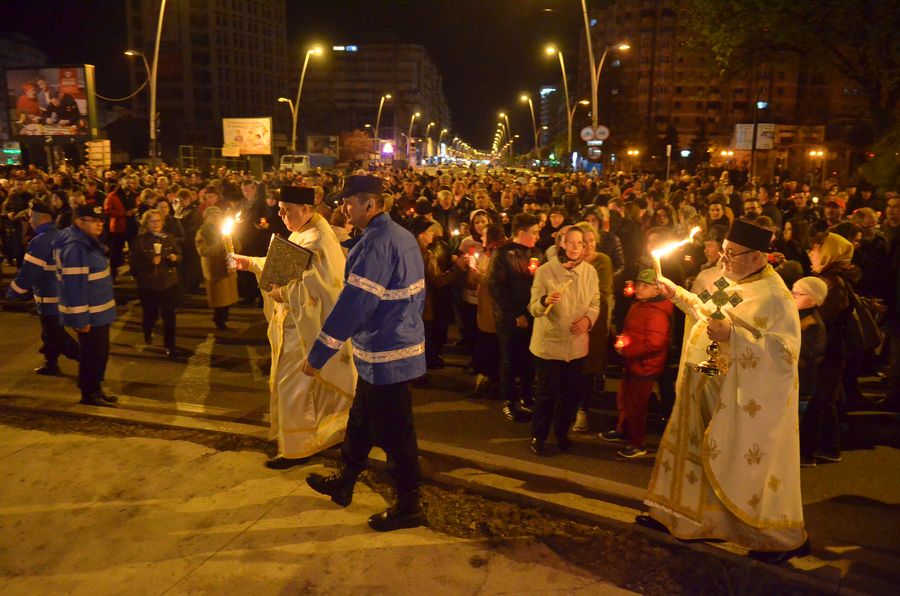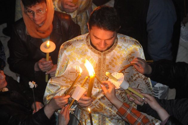 Cu calm, fără nicio grabă, pentru că este Vigilia Paștelui, așteptăm ca din întunericul mormântului să țâșnească Lumina și să ne trezească la bucuria Învierii. De 18 ani de când celebrez această Noapte Mare, niciodată nu am terminat înainte de ora 6.00 dimineața. Se face și botez prin scufundare. E foarte interesant pentru că și preotul intră în apă. Sunt acele momente unde uit de timp și de spațiu. Și, desigur, cei care au avut parte de astfel de momente înțeleg foarte bine această trăire, când îți dorești să nu se termine niciodată. ”