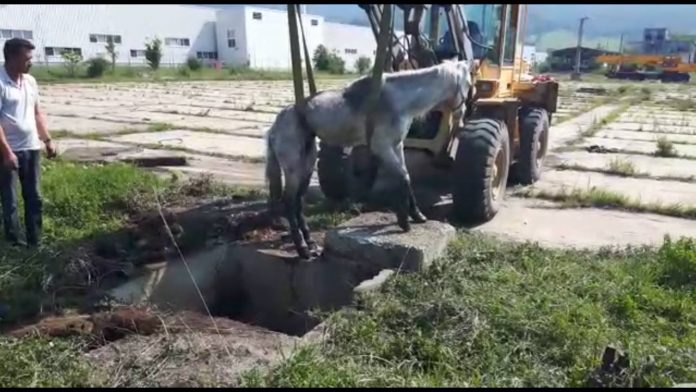 Luni, 23 mai a.c., la ora 09:24, Garda de Intervenţie Comăneşti a fost solicitată să intervină în oraşul Comăneşti, strada Florilor, pentru a salva un cal căzut într-un bazin de decantare.
