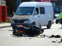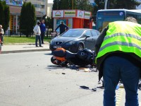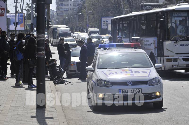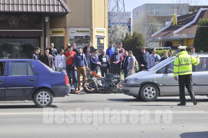 In urma impactului, motociclistul a fost transportat la spital pentru ingrijiri medicale.