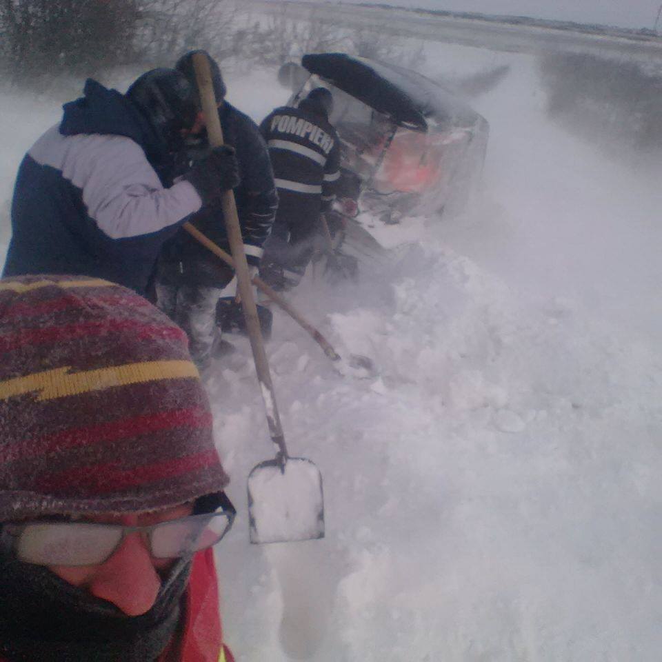 Din cauza stratului mare de zapada, in timpul deplasarii vehiculul salvatorilor s-a defectat si in sprijin au fost trimise autofreza de la Sectia de Pompieri Podu Turcului si o ambulanta.