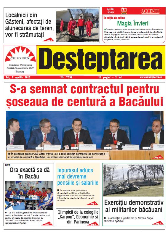 „Cu siguranta, 1 aprilie 2015 va fi o zi cu majuscule in istoria administratiei locale pentru ca astazi se semneaza contractul pentru cea mai mare investitie realizata in judetul Bacau dupa 1990, vorbim despre centura ocolitoare a municipiului Bacau”, a declarat, in deschidere, Dragos Benea, apoi a prezentat un scurt istoric al acestui obiectiv: „Stiti foarte bine ca aceasta centura isi are inceputul in 2004, când s-a realizat un studiu de fezabilitate. Intre 2004 si 2012, nu exista istorie pentru acest proiect, ci doar un moment care trebuie uitat, acest obiectiv fiind inaugurat de doua ori. In mai 2012, proaspatul prim-ministru Victor Ponta a promis ca va pune acest obiectiv intre prioritatile Guvernului, tot in 2012 s-a refacut proiectul tehnic, s-au aprobat noii indicatori, iar in aprilie 2013 s-a lansat licitatia. In mai 2014, domnul prim-ministru a spus ca nu pleaca din aceasta pozitie pâna nu se semneaza contractul acestei investitii. Din fericire sau din pacate, pentru unii, astazi este aici si participa la semnarea contractului”.