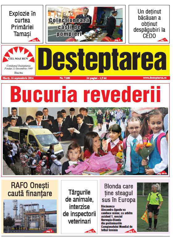 Prima zi de scoala a insemnat prilej de griji pentru foarte multi copii, data fiind reintâlnirea cu toti ceilalti colegi. Ba ca garderoba e neconforma cu moda, ba ca tableta sau telefonul nu sunt la ultimul nivel al tehnologiei si multe alte asemenea. In acelasi timp, intr-un satuc mic din comuna Izvoru Berheciului, prima zi de scoala a fost de asemenea prilej de griji pentru doua surori, Ramona si Elena, una de clasa a III-a si celalala de clasa a V-a.
