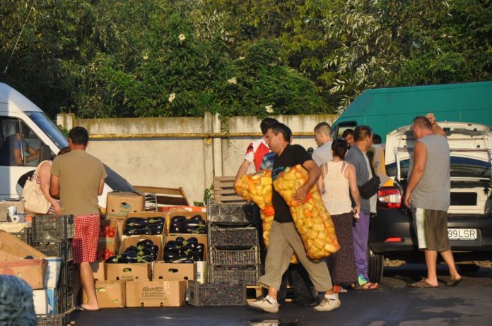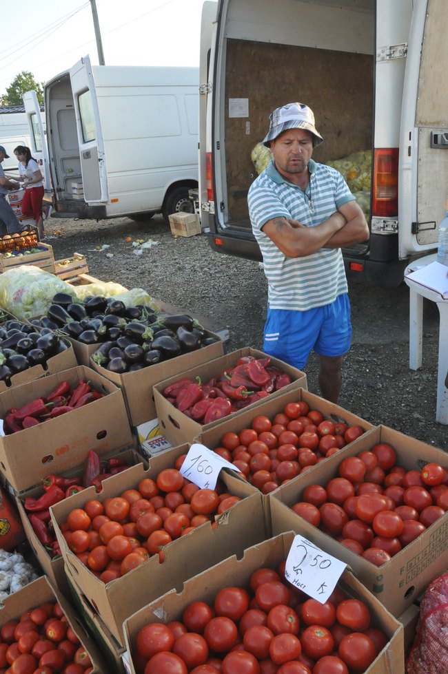 “Ce sa facem? Nu avem incotro. Altfel, râd samsarii de noi, vin si ne dau 50 de bani pe un kilogram de cartofi”, explica Razvan Ceasar, 24 de ani. Aici ii vinde cu 80 de bani, “nu-i cine stie ce diferenta, dar la cantitati mari se simte!” Capia rosu costa 2,8 lei/kg, rosiile 1,8 – 2 lei, prunele 0,90.