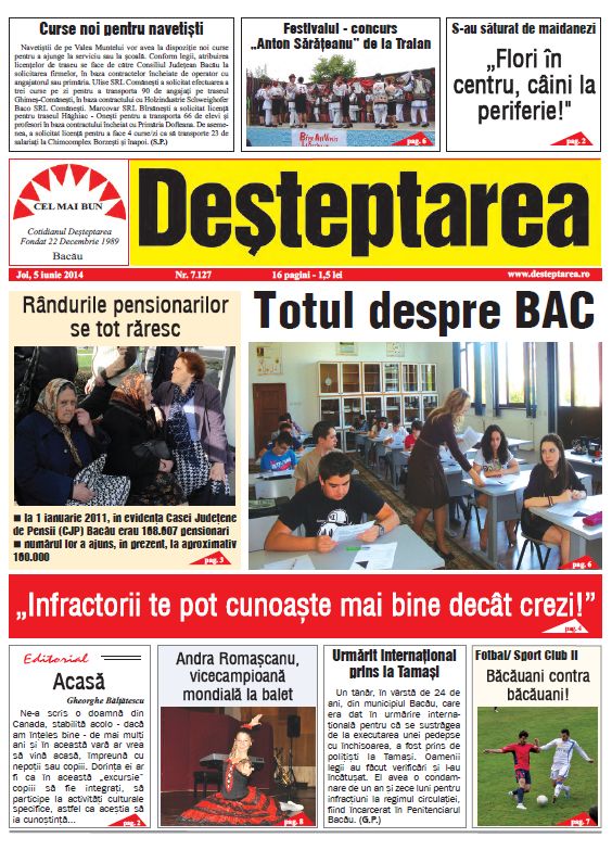 „În afara premiilor obtinute, elevele Laura-Diana Plotogea si Stefana Radu, de la Colegiul National ”Gh. Vranceanu” Bacau, prof. Florentina Neculau, s-au calificat la etapa internationala a concursului ce se va desfasura în 2015, în localitatea Sulmona, din Italia, Certamen Ovidianum Sulmonense”, a mai spus prof. Merticaru.