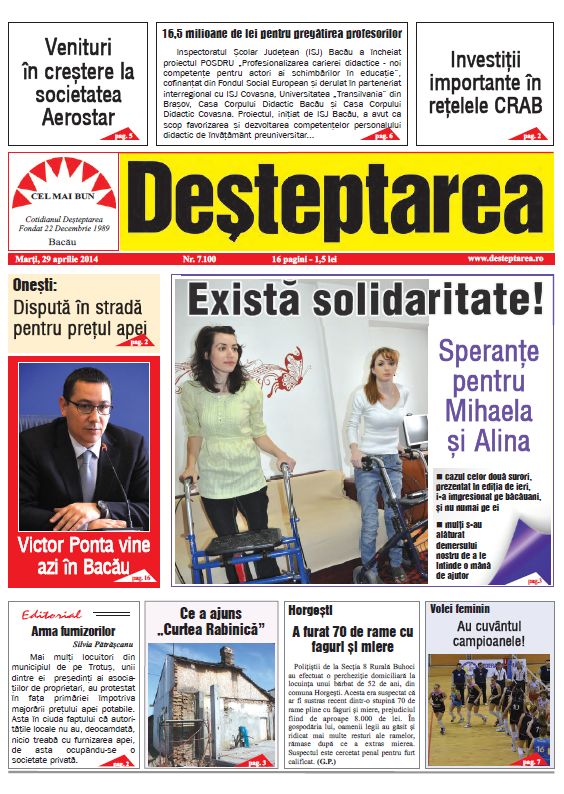 Mihaela, 27 de ani, si Alina, 30 de ani. Doua surori, din Bacau, condamnate la suferinta. Doua vieti chinuite, doua suflete pline de speranta. Doua destine identice. Amândoua sufera de o boala cumplita, foarte rara si fara leac – Ataxia Friedreich. Calvarul lor a inceput in urma cu mai bine de 10 ani, iar de atunci si problemele. Din ce in ce mai crunte si mai amare.