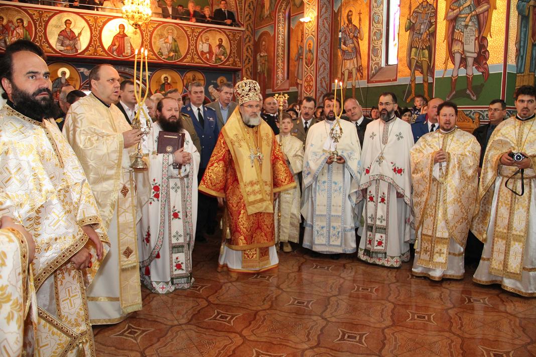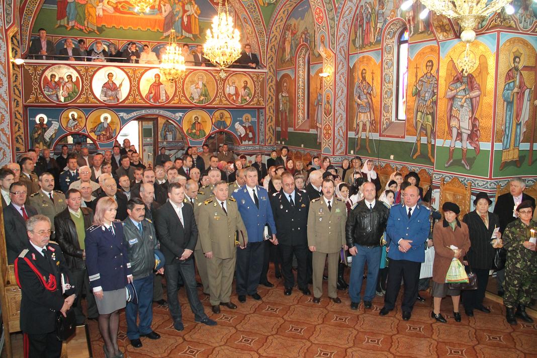 Slujba a fost tinuta de Ioachim Bacauanul, Episcopul – Vicar al Arhiepiscopiei Romanului si Bacaului, care, cu aceasta ocazie a hirotonisit un preot. La eveniment au participat autoritati locale, militari in rezerva, veterani si rudele acestora. Muzica militara a Garnizoanei Bacau a oferit un miniconcert sustinut in aer liber.
