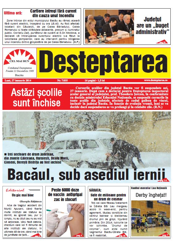 DSP Bacau monitorizeaza gripa prin tulpini suspecte care sunt trimise saptamânal la Institutul Cantacuzino Bucuresti si pâna acum nu s-a confirmat niciun caz de gripa pentru judetul nostru. Reamintim ca, la inceputul sezonului rece, DSP Bacau a solicitat de la Ministerul Sanatatii peste 98.000 de doze de vaccin antigripal, estimând ca acesta ar fi necesarul pentru iarna 2013 – 2014. [/HIDEPOST]