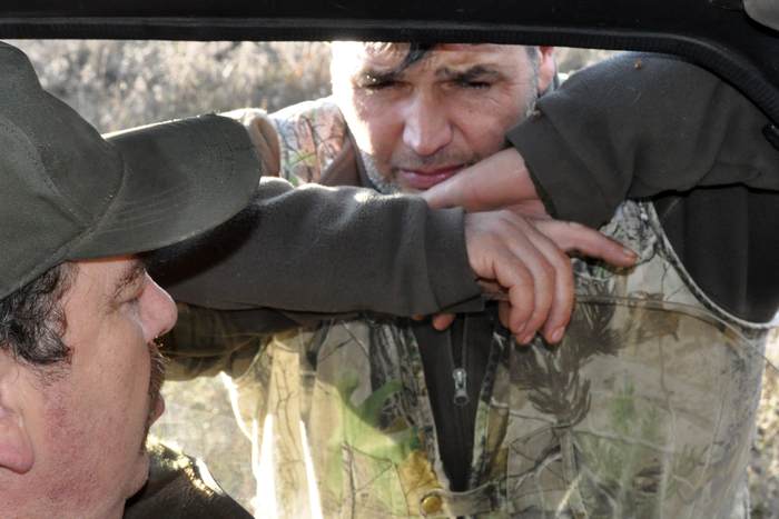 Un telefon de apel si unul de raspuns. „Ne intâlnim in fata magazinului din Spria, in cinci minute!” Parolisti. Vad in zare trei gipuri cum coboara din padure spre sat. Relu Botezatu, administratorul fondului cinegetic Colonesti vine spre mine. Ai un loc lânga domnu’ inginer. Ne stiam din vedere. Aflasem ca are un restaurant in Bacau, Class, cu meniuri vânatoresti. Hai c-am pus-o de-o reteta mai ciudata. In spate urca Tugui cu Fifi. Se scuza: „ea e sefa, nu vorbeste.” In alta masina ne insoteste padurarul ocolului, Ionel Dima.