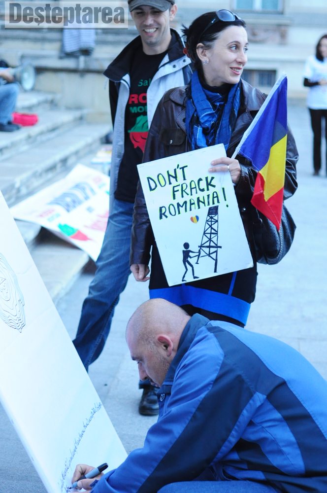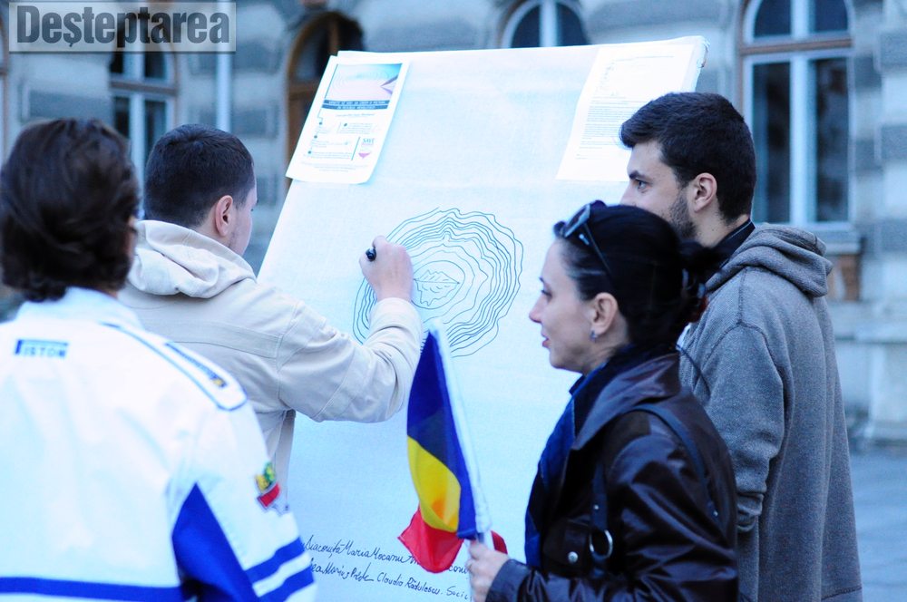 Noutatea din aceasta saptamana a constituit-o prezenta unui londonez originar din Bacau, care a venit cu o panza de tablou pe care era desenata frunza-simbol a miscarii de protest si care era inconjurata de o linie trasata de fiecare participant, care trebuia sa se si semneze.