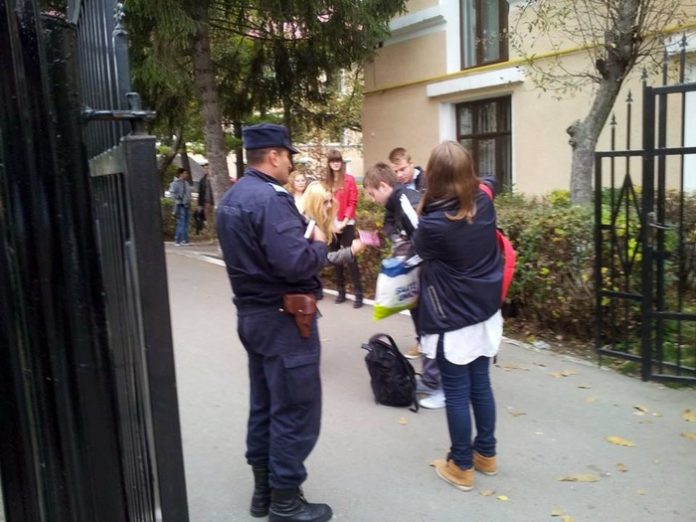 Control cu jandarmi la poarta Colegiului National „Vasile Alecsandri”