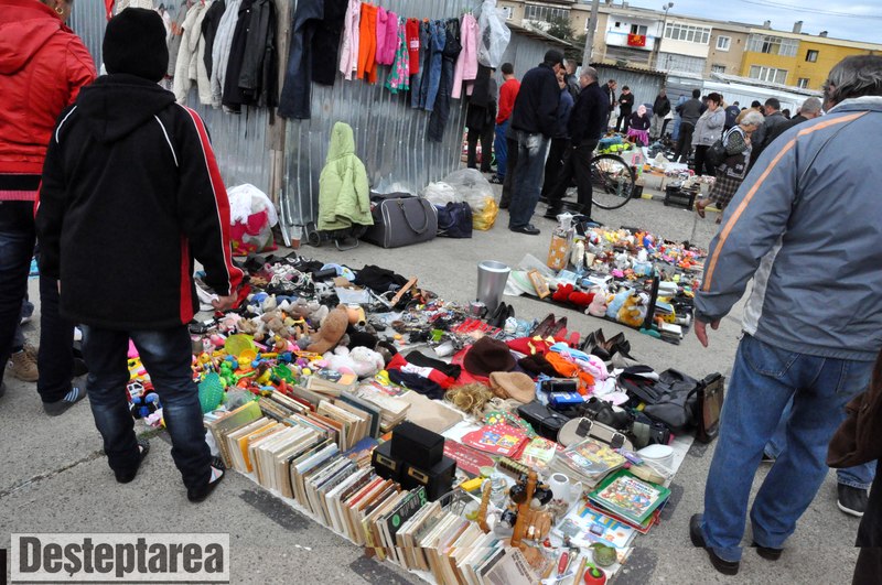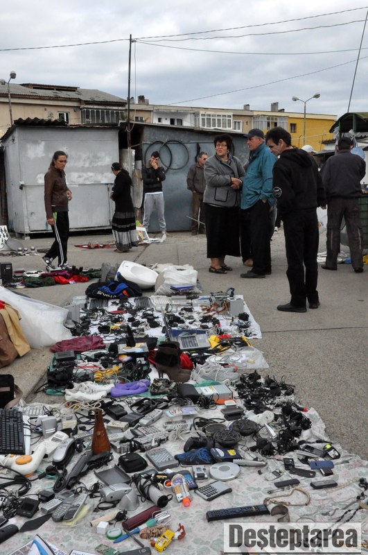 La tot pasul zac munti de telefoane mobile vechi, piese de calculator nefunctionale, mii si mii de fleacuri, intre care, de exemplu, un furtun spart pentru aspirator sau bibelouri ciobite. O tânara a insirat pe ciment câteva rafturi de carti, beletristica sau economie politica de pe vremea lui Ceausescu.