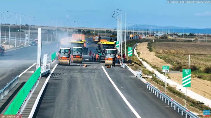 Pe șantierul Lotului 2 din Autostrada A7 Focșani – Bacău, între localitățile Domnești Târg și Răcăciuni, lucrările înaintează într-un ritm vizibil, așa cum arată o nouă filmare cu drona realizată de Răducu P. Deși raportările oficiale ale CNAIR indică un stadiu fizic de 65%, imaginile recente surprind un progres mai apropiat de 80%, semn că echipele constructorului lucrează susținut.