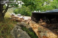 Trei tineri sparg linistea satului Stanisesti. Mânuiesc cu iscusinta drujbele, daltile, ciocanele. Au, fiecare, in fata, un urias bustean de stejar, care incepe sa prinda forme doar de ei stiute. Ai zice ca sunt taietorii de lemne, daca nu ai stii ca sunt in curtea vechii case in care s-a nascut, a copilarit si a creat marele sculptor George Apostu.