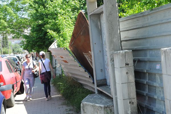 „Trec pe strada Nicolae Titulescu si nu pot sa nu observ o situatie care este foarte graitoare pentru indiferenta autoritatilor din acest oras. Un teren privat de lânga Muzeul de Arta are un gard din panouri de tabla, grele dupa cum se vede si inclinate cam la 45 de grade. Par gata sa se prabuseasca oricând. Când le vad ma gândesc, cu teama, ca ar putea cadea peste un copil. Ce asteapta autoritatile? Sa se intâmple o nenorocire si sa faca o ancheta? Cu ce ar ajuta-o pe victima? Nu mi-e teama sa le atrag atentia, asa ca-mi spun si numele: ma numesc Costache Spataru si sunt din Bacau.” Când am primit acest mesaj la redactie si ne-am gândit mai intâi la povestea drobului de sare. Am verificat, insa, cele relatate si trebuie sa-i dam dreptate cititorului nostru: panourile de tabla inclinate spre trotuar sunt un pericol pentru trecatori. Pe acel teren, proprietate privata, ar fi trebuit sa se ridice o cladire cu opt etaje. Autorizatia de constructie a fost eliberata de Primaria Bacau in 2008, valabilitatea ei fiind pâna in 2010. Se pare ca investitorul a fost lovit de criza, fiindca pe teren nu au crescut decât balarii. Doar gardul de santier si panoul mai amintesc de intentia sa. Dar pentru ca acest pericol sa fie indepartat, sesizarea a ajuns la Politia Locala Bacau, institutie ce trebuie sa ia masuri in astfel de situatii. „O echipa de la Biroul de Urbanism si Siguranta in Constructii se va deplasa la adresa respectiva pentru verificare si identificarea proprietarului. Acesta va fi somat sa dispuna masurile de imprejmuire corespunzatoare a constructiei si daca nu se va conforma va fi sanctionat conform HCL 223/2001 cu amenda de la 200 la 400 de lei”, a spus Florin Podoleanu, purtatorul de cuvânt al Politiei Locale Bacau.