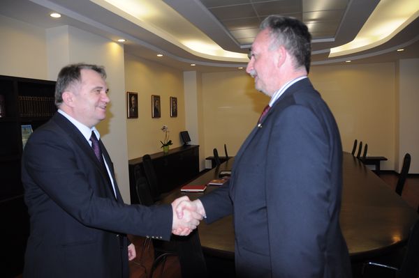 Ambasadorul Republicii Macedonia la Bucuresti, Pande Lazarevski, a intreprins ieri o vizita de lucru in Bacau. S-a intâlnit pentru prima data cu autoritatile locale si apoi cu reprezentantii oamenilor de afaceri, respectiv conducerea Camerei de Comert si Industrie Bacau, reprezentata de presedintele Doru Simovici (foto, impreuna cu ambasadorul). Aici, oficialii au facut schimb de carti de vizita si de informatii care tin de economia locala. „Am fost placut impresionat de ceea ce am vazut in orasul dumneavoastra. Sunt de acord ca trebuie sa intarim relatiile dintre Macedonia si orasul si tara dumneavoastra, motiv pentru care voi face un tur al oraselor din tara”, a declarat la finalul intâlnirii cu oficialitatile ambasadorul. De cealalta parte, reprezentantii Prefecturii Bacau, Consiliului Judetean si Primariei Bacau l-au asigurat de toata disponibilitatea pentru a gasi modalitati de colaborare, in special in plan economic.